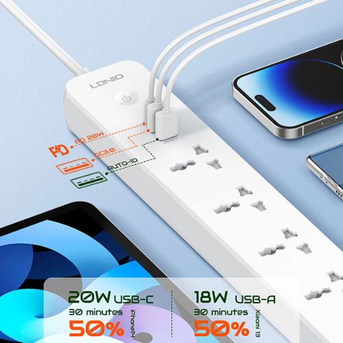 Powered by LDNIO’s Smart IC technology, the USB ports can detect and adjust power output based on your device. This ensures fast, safe, and energy-efficient charging every time.