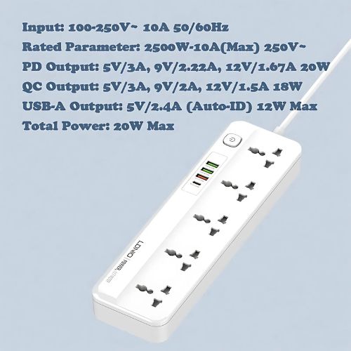 Number Of Socket: 5 Power Sockets +1PD 20W+1QC 18W+2 AUTO-ID