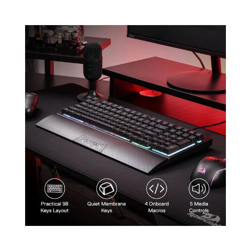 The Redragon SHIVA K515 delivers smooth typing and responsive gaming performance. The anti-ghosting keys ensure accurate input during intense gameplay, while the macro keys give gamers a competitive edge. The RGB lighting adds an immersive gaming atmosphere, and the ergonomic wrist rest enhances comfort for long sessions.Because it uses membrane switches, it is quieter than mechanical keyboards, making it ideal for streamers, students, and office users who want a gaming keyboard without loud clicks.