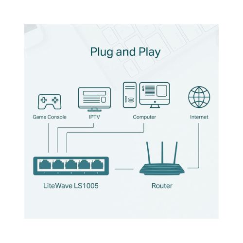 The LS1005 comes with 5 auto-negotiation 10/100Mbps RJ45 ports that ensure stable connections for multiple devices like PCs, printers, smart TVs, and IP cameras.