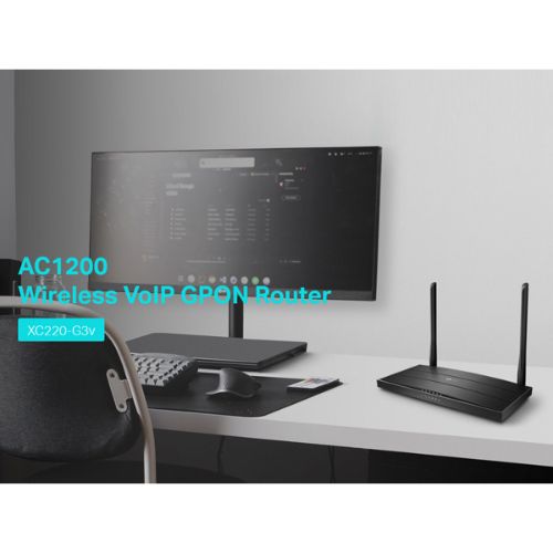 The TP-Link XC220-G3v AC1200 Wireless VoIP GPON Router is a complete networking powerhouse that delivers lightning-fast fiber speeds, strong Wi-Fi coverage, and integrated VoIP features — all in one sleek device. Whether you’re setting up a new home network or upgrading your business connectivity, the XC220-G3v guarantees stable performance, advanced features, and top-tier reliability.If you want a professional-grade router that blends speed, voice capability, and stability, the TP-Link XC220-G3v is undoubtedly one of the best options available.