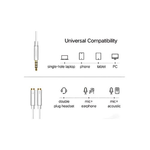 UGREEN AV141 (10789) 3.5mm to 2×3.5mm Audio Cable White designed to split one audio signal into two outputs. This means you can connect two sets of headphones or speakers to a single device — perfect for sharing music, watching movies together, or collaborating on audio projects