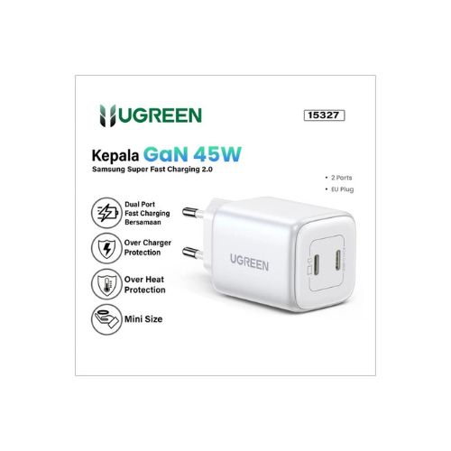 The UGREEN CD294 (15327) NEXODE 45W Dual USB-C GaN Fast Charger (White) is a powerful, versatile and travel-friendly charging solution. With dual USB-C outputs, GaN efficiency, universal compatibility, and advanced safety features, it ensures your devices are always charged quickly and safely. Whether you’re at home, in the office, or traveling, this charger is the perfect companion for modern digital lifestyles