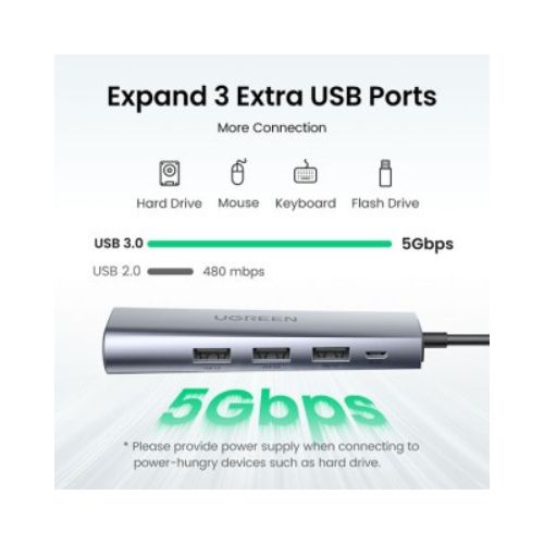The UGREEN CM266 docking station is equipped with five essential ports, allowing you to expand your device’s capabilities instantly: