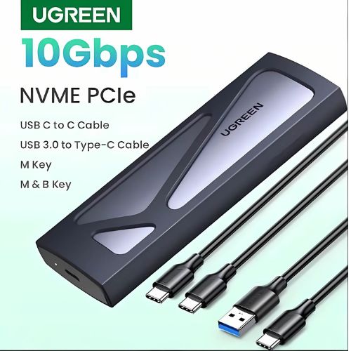 The Ugreen CM767 (15813) is a premium-quality M.2 NVMe SSD enclosure that allows you to convert an internal M-Key or B+M Key NVMe SSD (sizes 2230/2242/2260/2280) into a portable external drive. Built with high-performance USB 3.2 Gen 2 interface, it supports blazing-fast data transfer speeds of up to 10Gbps, making it perfect for 4K video editing, system backups, large file transfers, and gaming storage expansion.