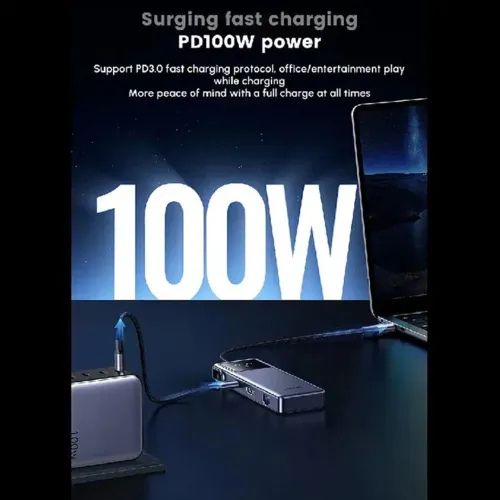 The USB-C PD port provides up to 100W Power Delivery, allowing you to charge your laptop while simultaneously using all other ports.