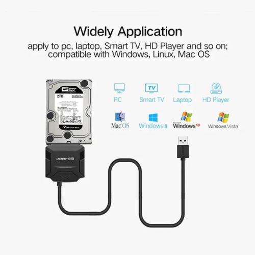 The Ugreen CR108 20611 USB to SATA Converter is a plug-and-play adapter that allows you to connect any 2.5-inch SATA HDD or SSD to your PC, laptop, or compatible device via USB 3.0. Designed for simplicity, speed, and portability, this adapter eliminates the need for bulky enclosures or tools. Just plug it in, and you’re ready to go.