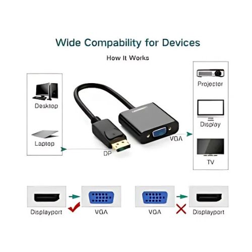 The UGREEN DP109 20415 DP Male-to-VGA Female Converter is a compact, efficient, and budget-friendly solution for anyone needing to connect new-generation devices to legacy displays. Its solid performance, high compatibility, and ease of use make it a must-have tool in your tech arsenal—especially in business, education, or home environments still using VGA monitors.