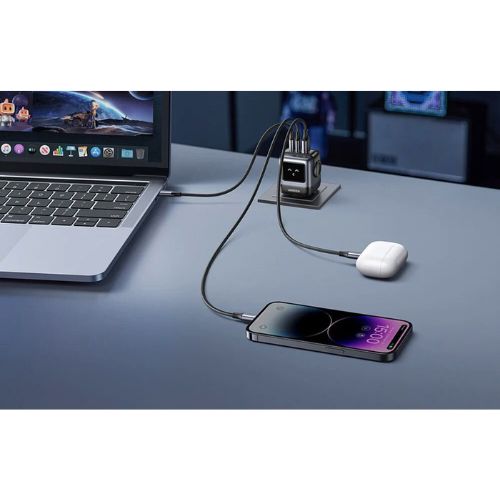 The multi-port configuration (typically 2× USB-C + 1× USB-A) lets you charge a laptop and phone together, or a phone-tablet-earbuds combo. Dynamic power sharing prioritizes your higher-draw device while keeping smaller gadgets topped up safely.
