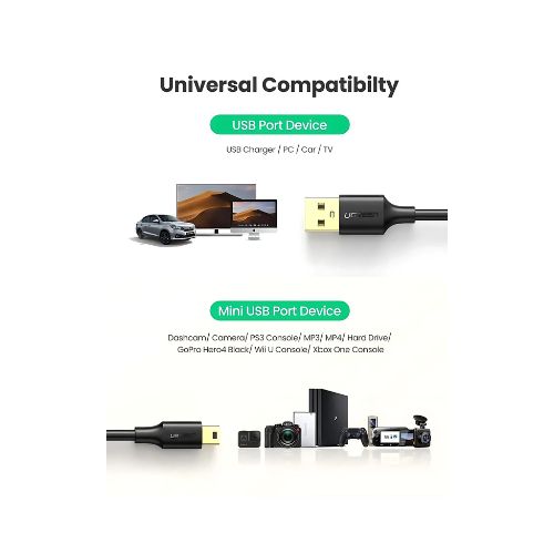 The UGREEN US132 USB to Mini USB Cable is purpose-built for devices that use the mini USB 5-pin connector, a standard popular before the widespread adoption of Micro USB and USB-C. It is the ideal cable for connecting: