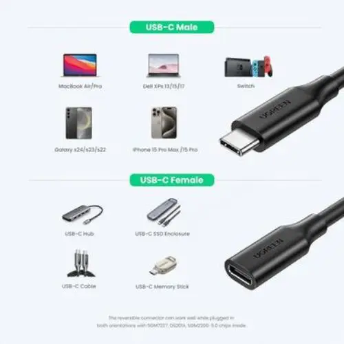 The UGREEN US353 USB-C Extension Cable is compatible with a wide range of USB-C devices, including: