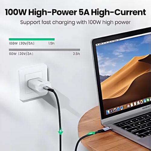 The UGREEN US355 cable supports PD 3.0 fast charging up to 100W (20V/5A), allowing you to charge even power-hungry devices like MacBook Pro 16”, gaming laptops, and USB-C monitors at maximum speed. With this cable, you can say goodbye to long charging times.