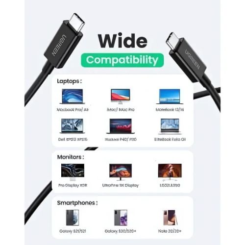 In a world where speed and reliability are everything, Ugreen US501 (30389) Thunderbolt-4 Cable stands out as the go-to solution for high-performance data transfer, fast charging, and superior video output. Designed for professionals, gamers, content creators, and everyday tech users, this 0.8-meter cable is engineered with the latest Thunderbolt 4 and USB4 technology to maximize efficiency and simplify your digital life.