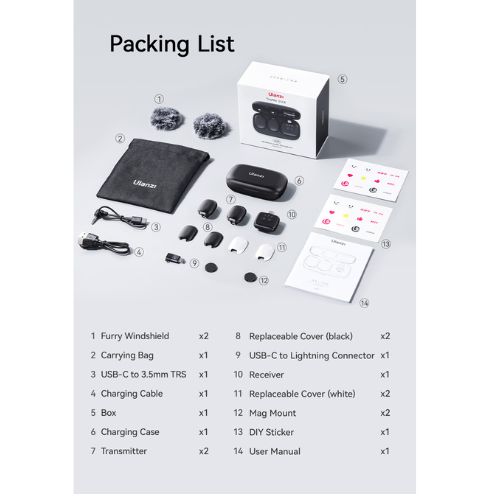 When you purchase the Ulanzi A30 Wireless Lavalier Microphone, you get: