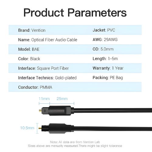 | Package Content | Vention BAEBG Toslink Male to Male Optical Audio Cable |