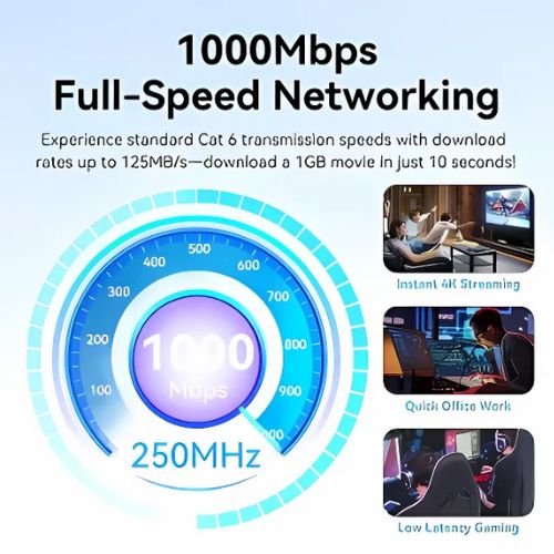 With its Cat.6 standard, the VENTION IBELG cable supports Gigabit Ethernet and beyond, ensuring smooth streaming, fast file transfers, online gaming, and VoIP calls without latency.
