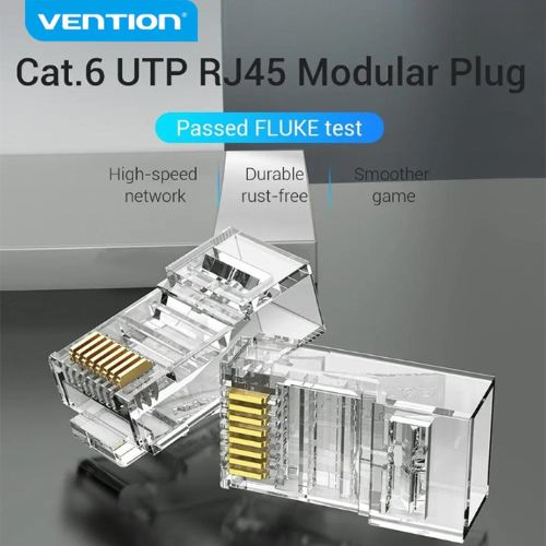 | Others | Vention CAT-6A UTP RJ45 Transparent Connector. Gold-plated Contacts Do Not Rust, Thick gold-plated terminals, the network speed is still stable for a long time, High-quality PC Material |