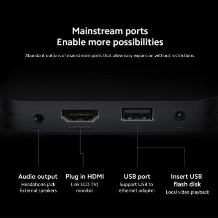 Equipped with HDMI 2.1, the TV Box ensures low-latency, high-bandwidth transmission. It supports Wi-Fi 5 and Bluetooth 5.2 for stable wireless connections and smooth Bluetooth pairing with headphones, speakers, or game controllers.